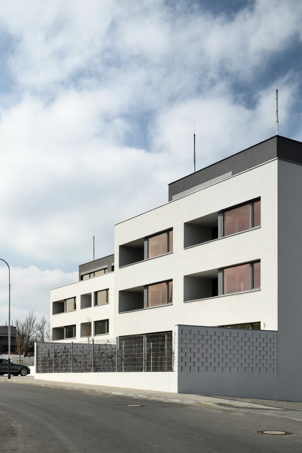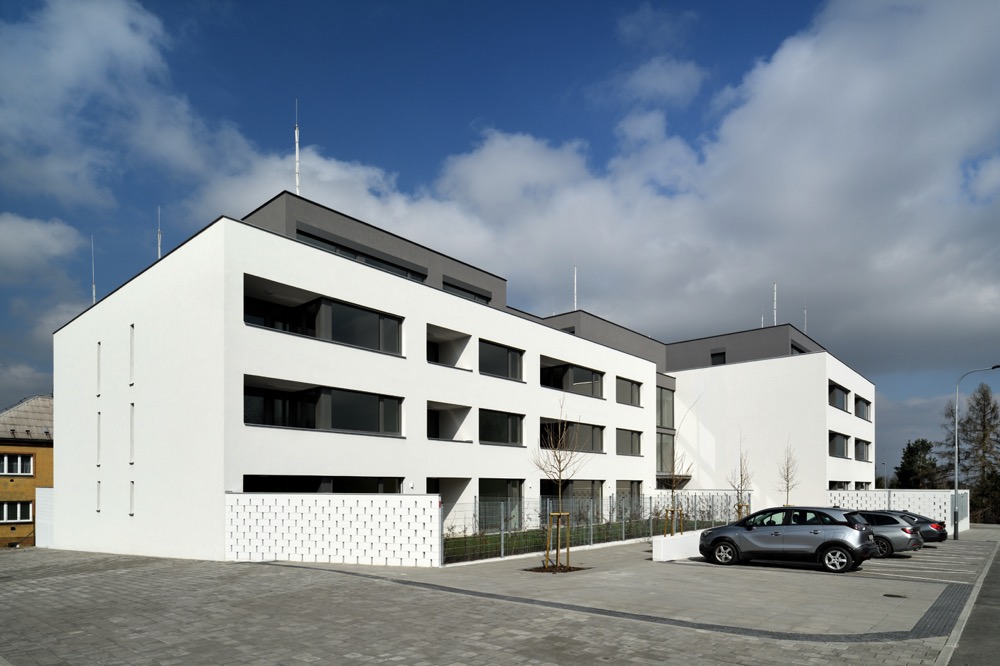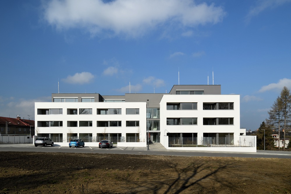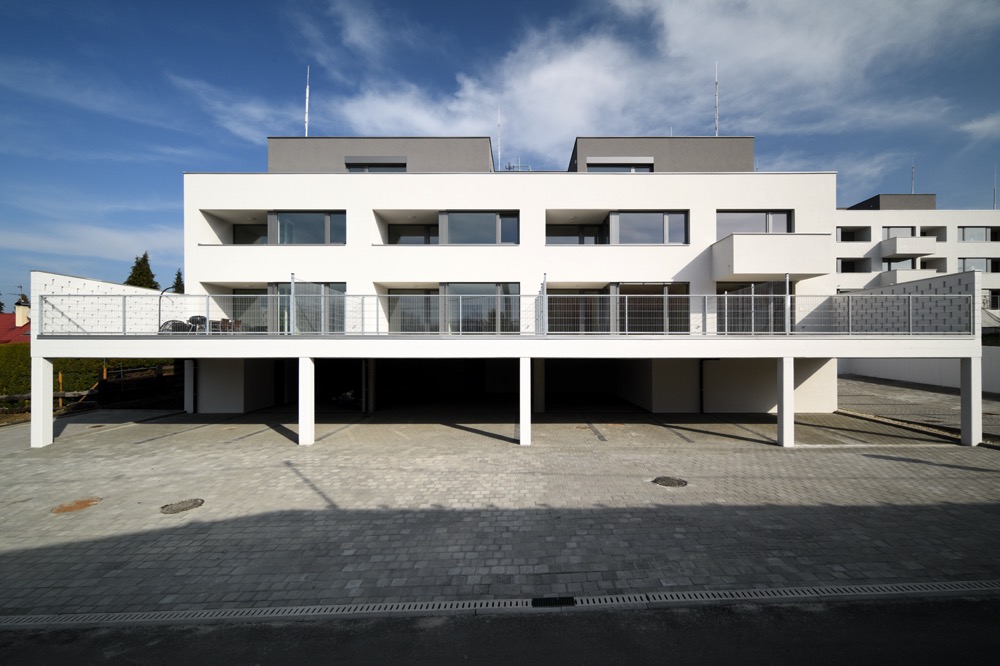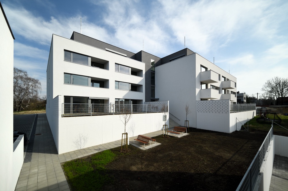 Obytný soubor je navržený jako přechodový prvek mezi nízkopodlažní zástavbou rodinných domů na severní straně a bytovými domy na straně jižní.