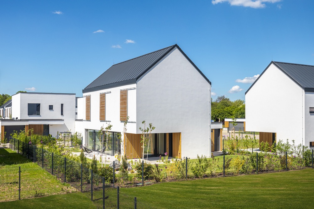 Využití obnovitelných zdrojů v projektu (jako % podíl obnovitelné energie z celkové dodané): Kombinací tepla získaného ze vzduchu prostřednictvím tepelných čerpadel a rekuperačních jednotek dosahují domy přibližně 50–60 % podílu obnovitelných zdrojů na celkové spotřebě energie. Zbývající část je doplňována z distribuční sítě.