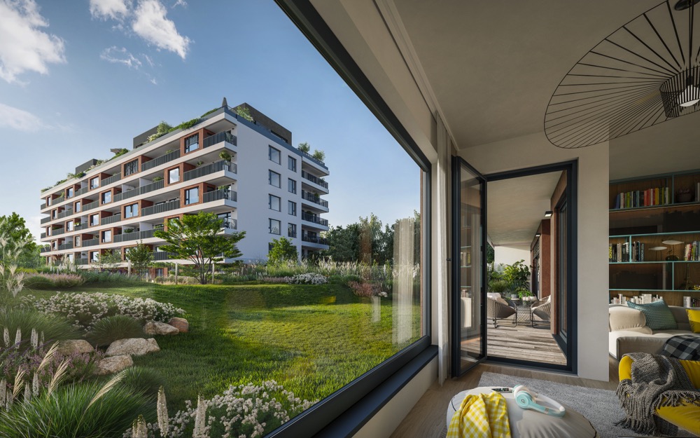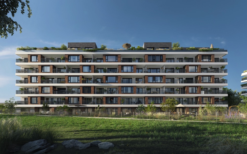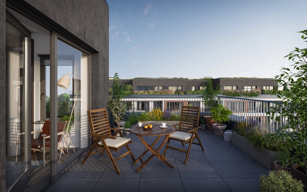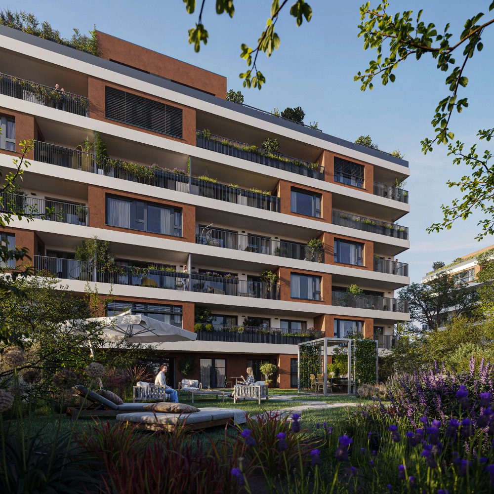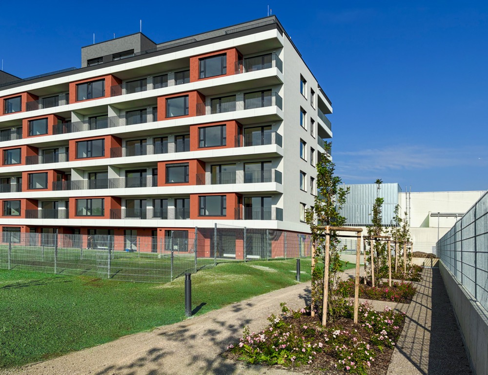 Použité environmentální technologie v projektu, které snižují dopad budovy/projektu na životní prostředí: Veškeré střešní konstrukce v provedení tzv. „zelené střechy“. Zasakování a retence dešťové vody, vč. zpětného využití pro zálivku společných sadových ploch.