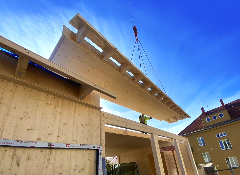 Hlavním konstrukčním prvkem jsou dřevěné panely Novatop pocházející z nedaleké výroby. Volba tohoto systému umožnila vysokou míru prefabrikace a zejména použití pohledového dřeva v interiéru. Udržitelnost se pak dále linula celým projektem a byla jedním z rozhodujících kritérií při volbě materiálů i technologií.