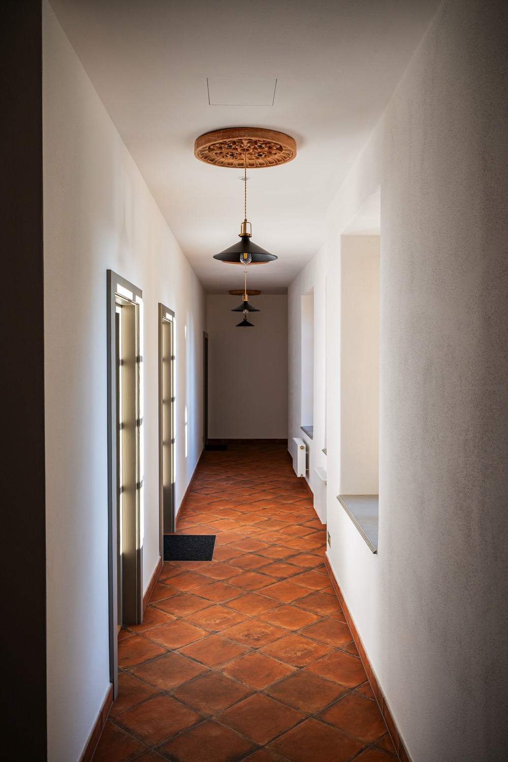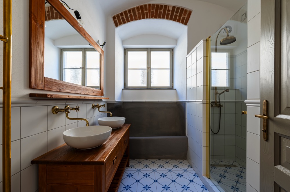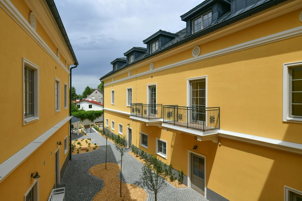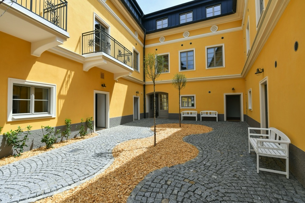 Jaké obnovitelné zdroje se využívají?: Dešťová voda je zachycována v podzemní nádrži o velikosti 5m3 a je využívána na zalévání zahrady ve vnitrobloku a umývání kol. Tepelná i akustická pohoda je zajištěna původní masivní konstrukcí domu, kdy suterén je vyzděn z kamenného zdiva o síle min. 70cm a vyšší nadzemní podlaží ze smíšeného zdiva o síle min. 50cm. Okna jsou ručně hoblované historické repliky původních špaletových oken s zesílenou akustickou a tepelnou izolací. Díky zvoleným kvalitním a masivním konstrukčním materiálům se podařilo v domě obnovit původní tepelný režim historického objektu, který není potřeba doplňovat moderními technologiemi jako např. klimatizace. Netypicky veliká špaletová okna (194x134cm) zajišťují v objektu velkou prosvětlenost, což není v historických objektech běžné. Tato velká prosvětlenost dodává celému domu velmi pozitivní atmosféru i ve společných prostorách, což je dle hodnocení nových majitelů velmi významná přidaná hodnota celého objektu. V kontrastu s tímto pozitivním charakterem všech nadzemních podlaží je poněkud tajůplná atmosféra v podzemních kamenných renesančních sklepních prostorách, které pocházejí z 15 stol. a nabízejí udržení stálého celoročního klimatu.