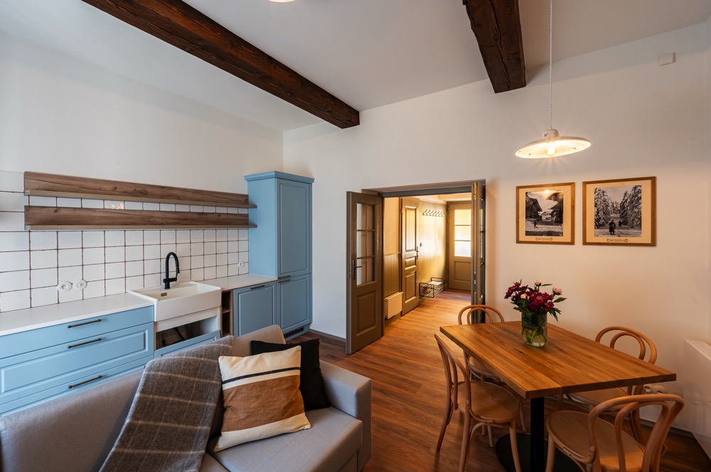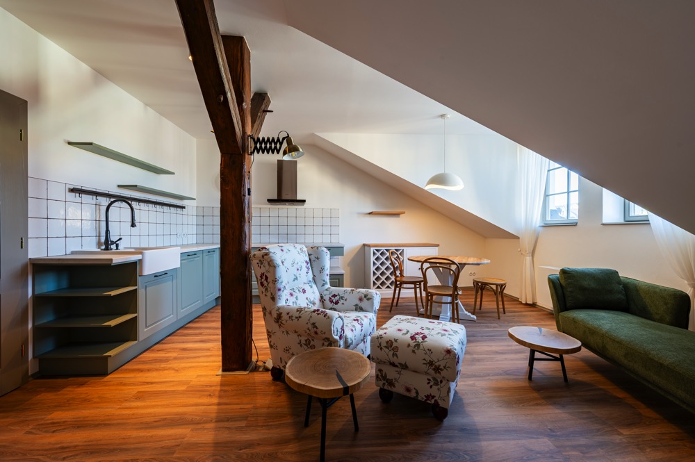 Rezidence Bílá Růže představuje komorní projekt v malebné městečku v podhůří Šumavy. Objekt bývalého zájezdního hostince, situovaný v památkové rezervaci přímo na náměstí Kašperských Hor, prošel kompletní rekonstrukcí. Ta umožnila vznik 18 bytových jednotek s dispozicemi od 1+kk do 3+kk. Díky promyšlenému přístupu nabízí byty variabilní řešení, od menších studií s výměrou od 36 m² až po velkorysé mezonety s plochou až 119 m². Investor kladl mimořádný důraz na citlivou obnovu historického objektu v kombinaci s kvalitními standardy současnosti. Klenuté stropy, odhalené trámy a cihly, ručně vyráběné dveře a okna či citlivě repasované interiérové prvky dodávají prostoru jedinečnou atmosféru, komfort bydlení pak zajišťují moderní technologie, např. online měření energií nebo centrální ekologické vytápění. K bytům patří sklepní kóje a parkovací stání s přípravou nabíječku pro elektromobily. Pohodlí rezidentů zvyšují pekárna a kavárna s pražírnou v přízemí Bílé Růže, stejně jako privátní atrium s upravenou zahradou s altánem. Rekonstrukce Bílé Růže coby posledního zchátralého objektu na zdejším náměstí je už druhým projektem, který investor v Kašperských Horách realizoval – v tomto případě projekt vrátil ztracené hodnoty nejen samotnému domu, ale i jeho širšímu okolí.