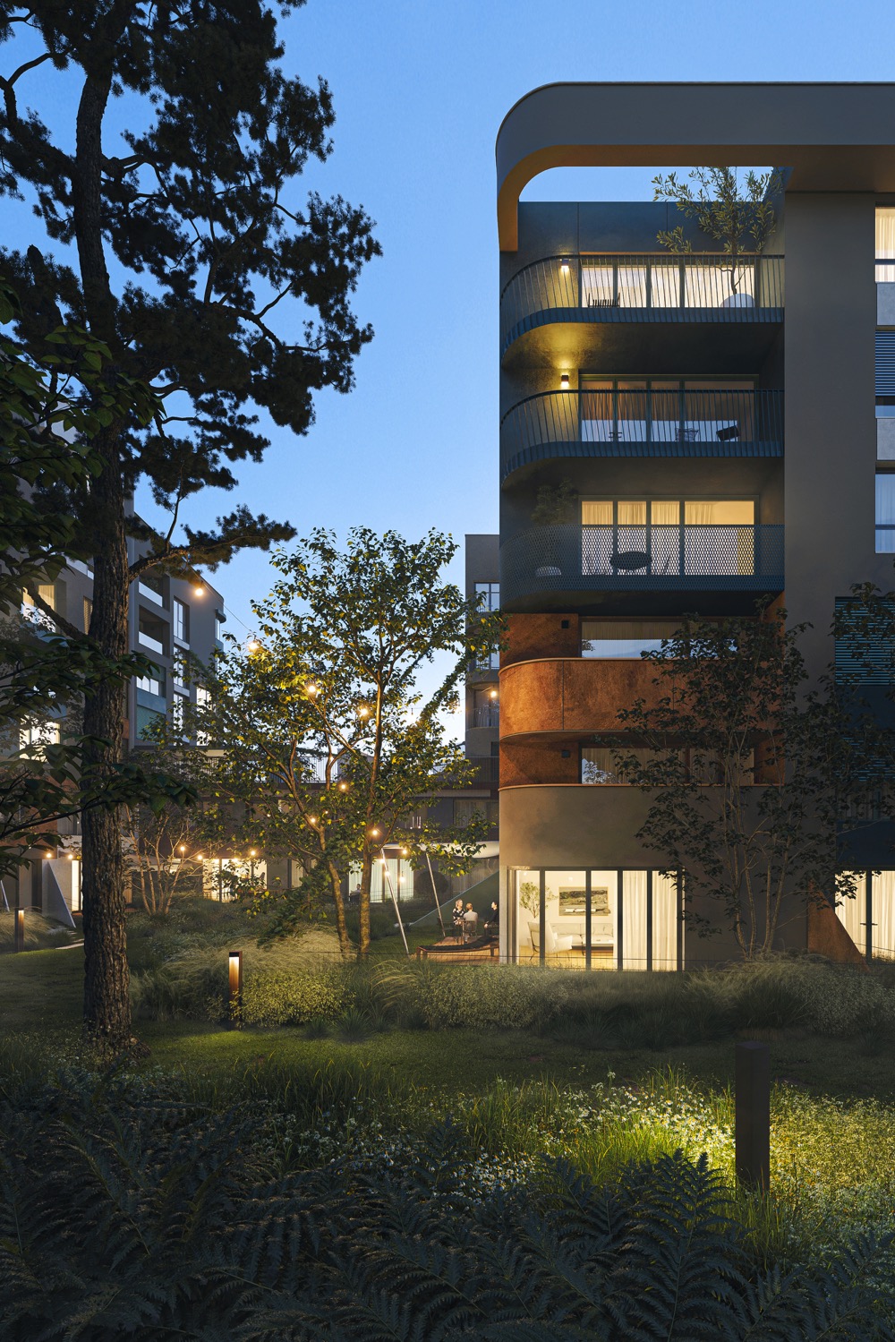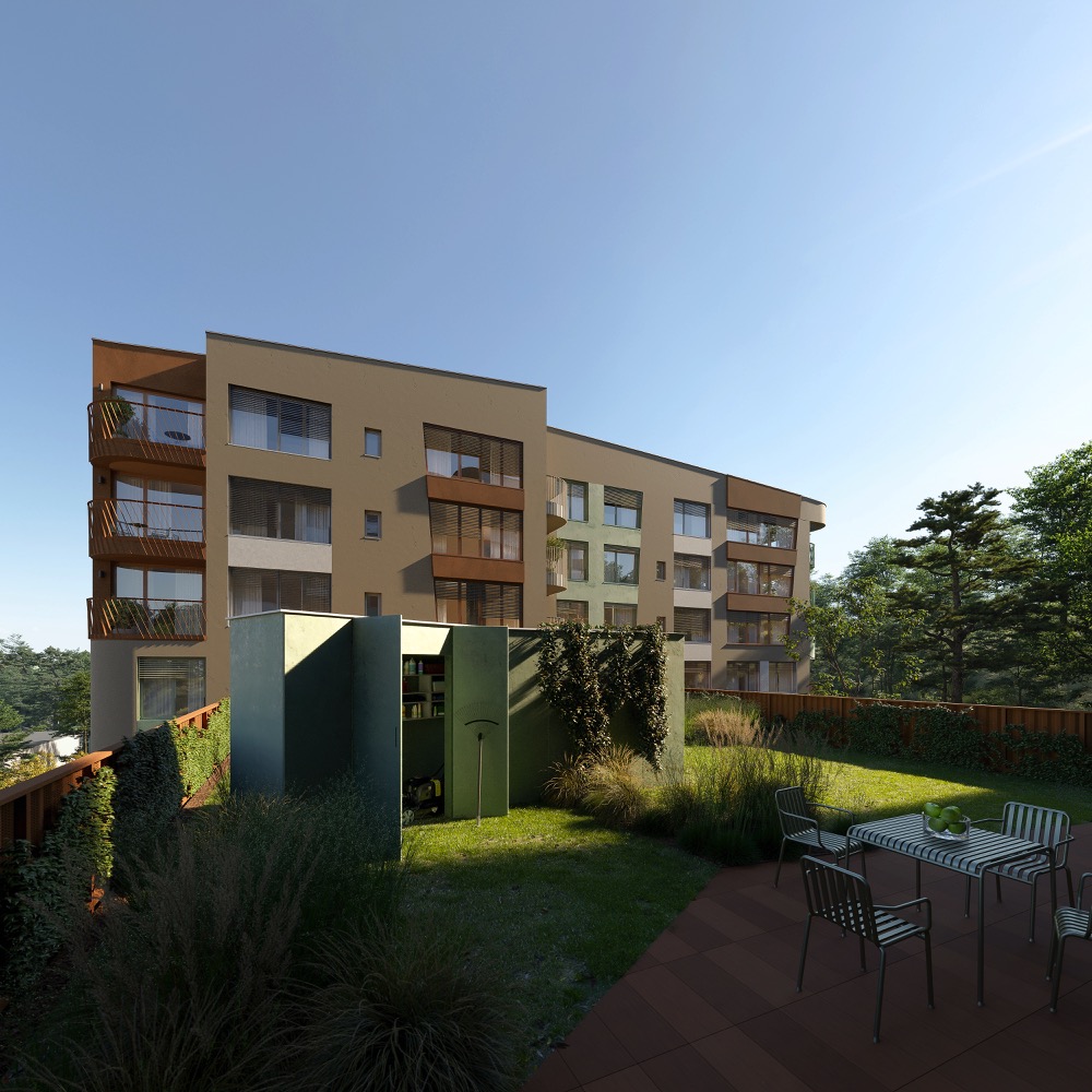 Ve vnitroblocích si s dětmi užijete privátní i komunitní zahrady s vegetací, která navazuje na zeleň přilehlého lesoparku.