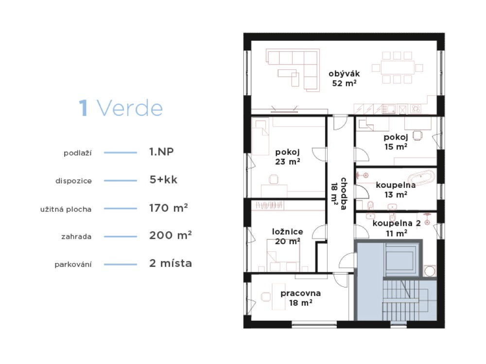 Všechny jednotky jsou vybaveny strukturovanou kabeláží, které umožňují stabilní a rychlé připojení pro práci i zábavu.
