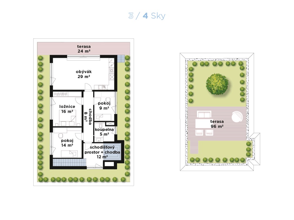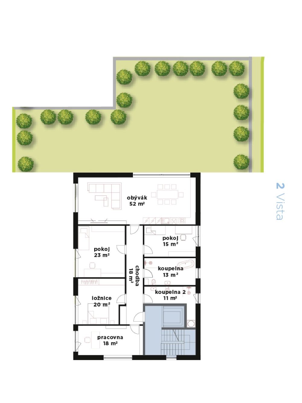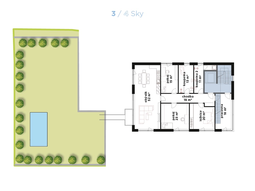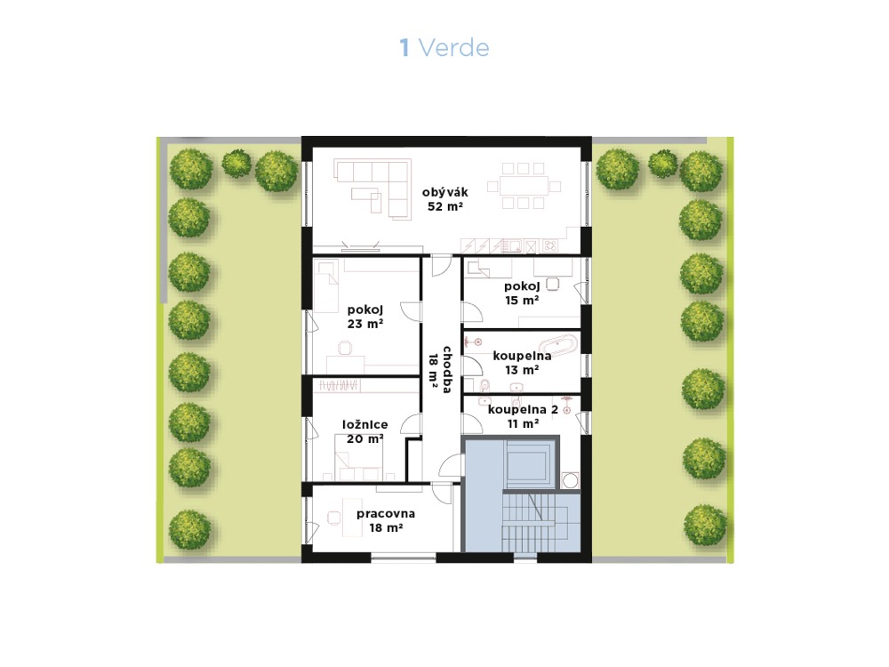 Dispozice bytů je promyšleně rozdělena na denní a noční část, čímž se zvyšuje funkčnost prostoru a komfort bydlení. Toto zónování zároveň přispívá k efektivnímu řízení teploty a větrání v různých částech bytu.