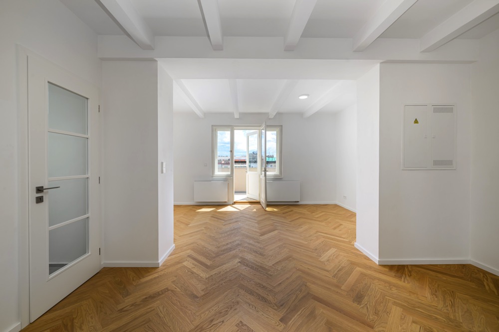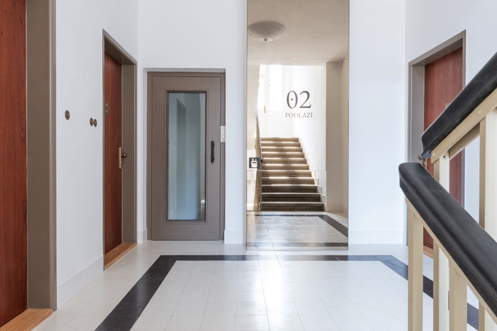 Technologické inovace (vybavení a standard pronajímaných ploch): Bytové jednotky jsou vybaveny dřevěnými podlahami a replikami původních špaletových oken s dvojskly, které respektují původní architektonický ráz domu a zároveň splňují současné nároky na energetickou úspornost a akustický komfort.
