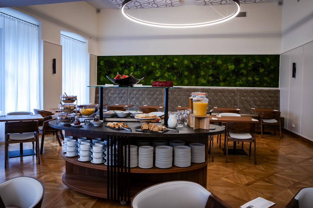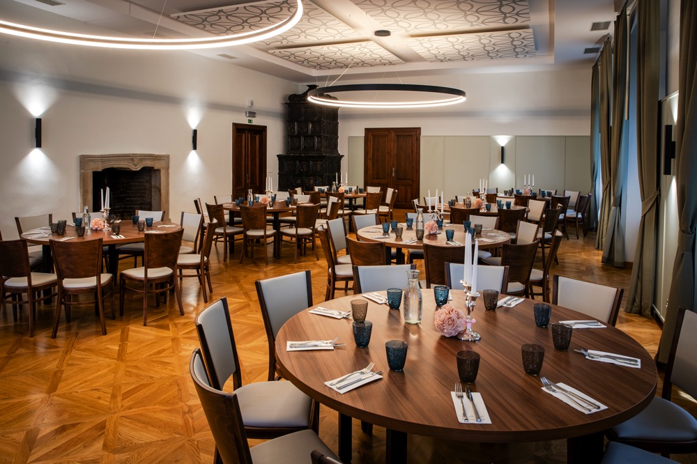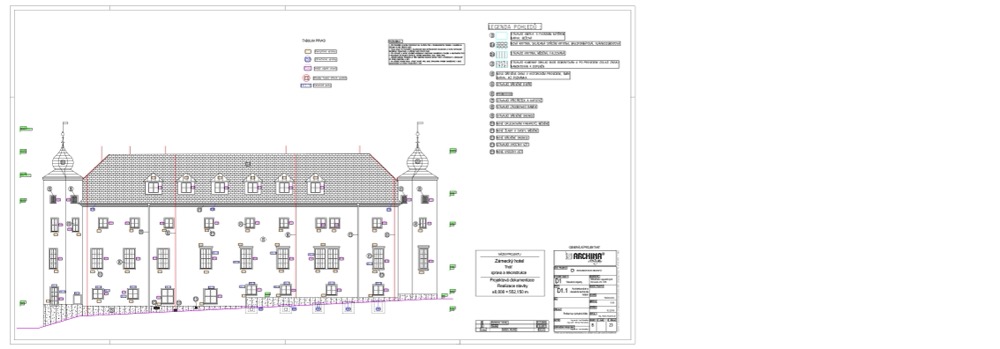 Do 2.NP jsou situovány reprezentativní prostory hotelu – jídelna, konferenční sál a salonky.